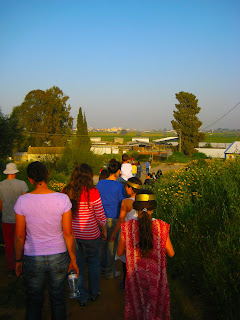I have been abnormally lucky throughout my life that this experience of the "other" Pesach has luckily been closer to my norm. Every other year or so my family travels to Israel to join my Ima's relatives for their form of Pesach, and each time we are together in Israel, I can't help but compare it to what I am used to back home. The family over here is large and diverse and every other year they switch between my uncle and aunt's house, where they host a seder closer to the kibbutz experience of their childhood, and my aunt's brother's home, where they hold their unique version of an Iraqi seder. At my uncle and aunt's the defining features are my uncle's salted fish, which is actually my great-grandmother's salted fish, which he buys from the same butcher where my Savta (grandmother) bought them decades before. It is full of tiny, tiny bones I have learned over the years to pick through and while I will never be an expert like my cousins on this side of the ocean, I think I can say that I have certainly improved over time. The fish is cut into spheres of delicious, cold, jelly and carrot-topped goodness that we dip into a shock of red horseradish and wash down with dry Israeli wine. My family also always comes up with an interesting twist, always asking each participant to think of something new. One year we were each to go around and talk about our favorite line from the Hagaddah and what it means to us. Another year we were given pieces of paper to write what we want to renew for the coming year, during this spring and harvest. And always there is the song of the children from the wheat fields, where they go to pick the first harvest and dance with the wheat stalks, always there is a speech from my Saba, always there is incredible food on a beautifully decorated table filled with family heirlooms from the 1700's from the Warburg side, and it always culminates in my uncle leading the way into hours of song, red-faced and eye-squinted as his beautiful baritone trembles through the air. The guests of this kibbutz seder had all been in the kibbutz choir in their childhood and thus beautiful harmonies float about.
